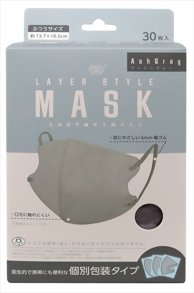 -30点セット レイヤースタイルマスク 個別包装 アッシュグレー 富士 マスク