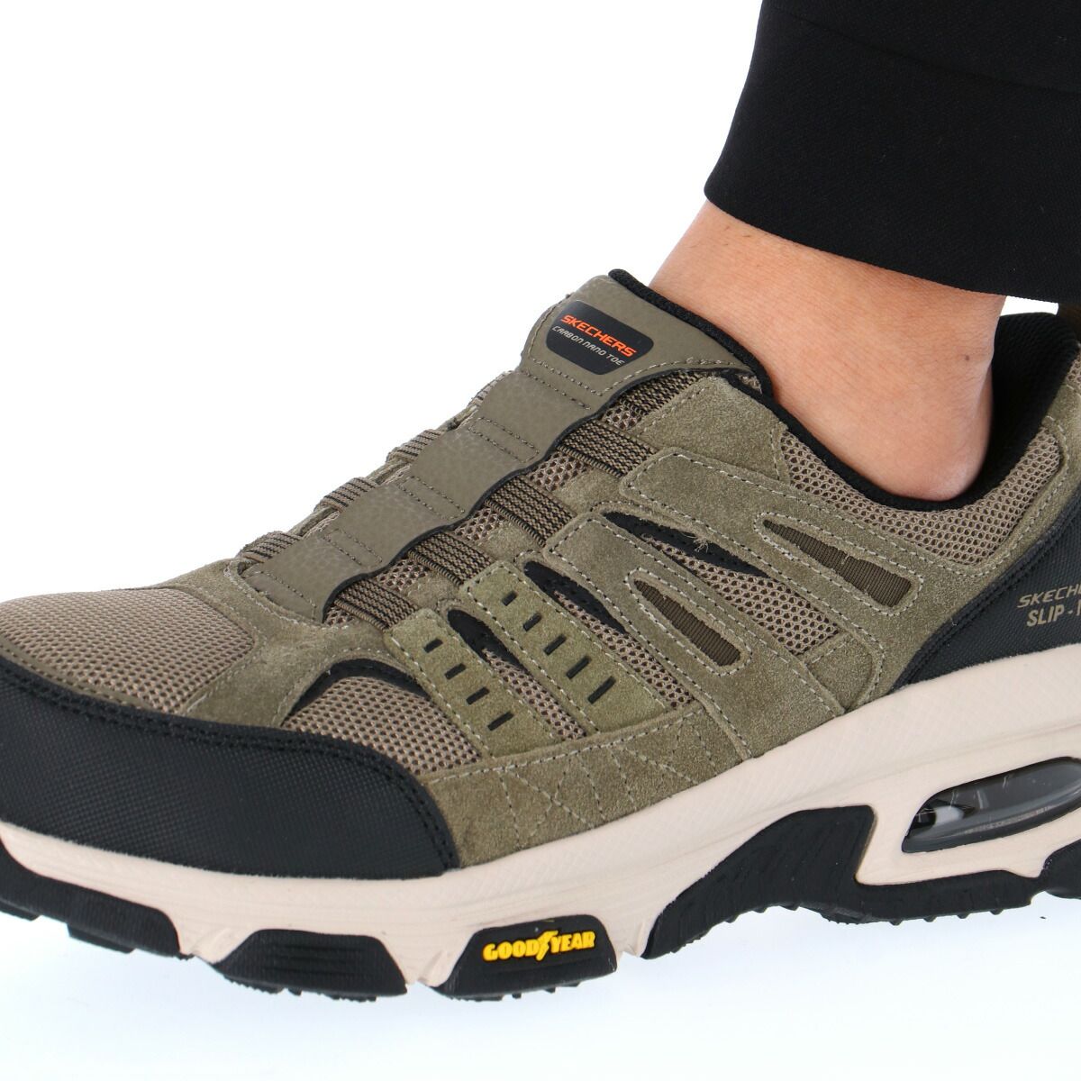 抜群のトラクション性と快適な安全性を誇るSkechers Work(スケッチャーズ ワーク):Skech-Air(スケッチエア) エンボイ ST - デリゲーターでギアアップ。独自のHeel Pillow(ヒールピロー)を採用した、アウトドアに最適なスリップオンワークシューズ。メッシュとスエードのアッパー、カーボンナノ セーフティトー、Skechers Air-Cooled Memory Foam(スケッチャーズ エアクールドメモリーフォーム)インソール、ビジブル構造のSkech-Air(スケッチエア)エアバッグミッドソール、耐久性に優れたGoodyear Performance(グッドイヤー パフォーマンス)アウトソールが特長です。