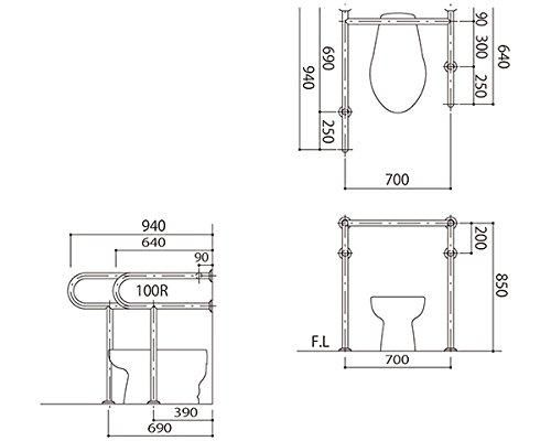 新協和 バリアフリー手摺 洋式トイレ用左勝手 32 mm バフ研磨