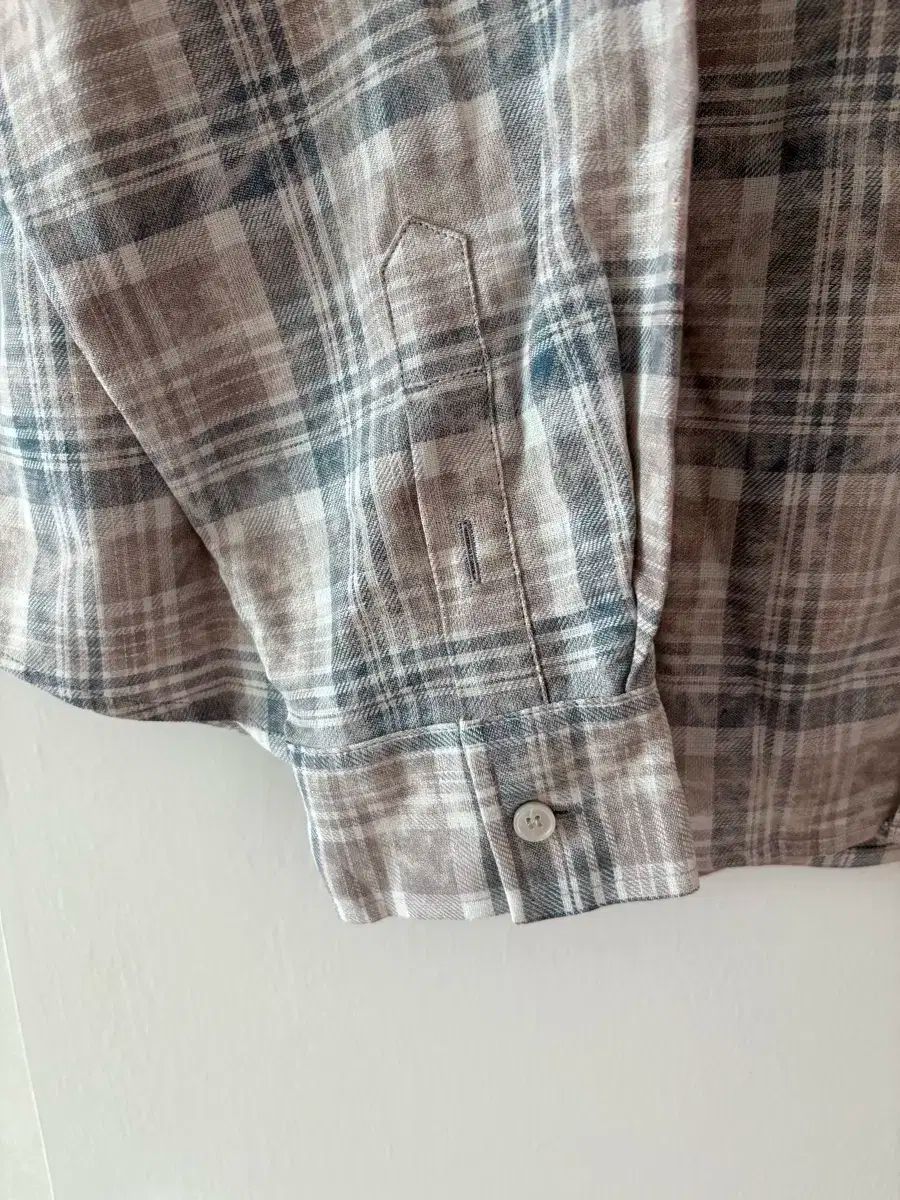 coor クアー マドラスチェック チェック オーバーサイズ シャツ カラー サーモンブルーグレー サイズ xl