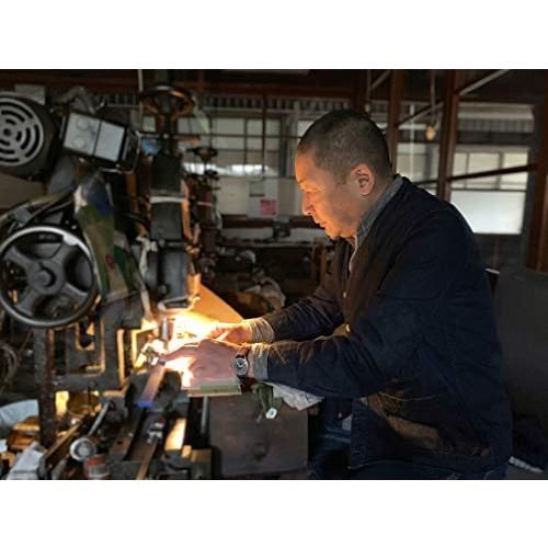 説明 熟練の職人技が光る三段ヤスリ目立てが自慢。 爪ヤスリの素材は、約1mmの薄いステンレス板。 そこに「たがね」と呼ばれる鋼を打つことで爪ヤスリの刃を一本一本を立てていきます。 この刃を立てる工程を「目立て」と呼びます。吉田ヤスリ製作所では目立て機を用いて一本ずつ手作りで目を立てています。 職人はたがねを研ぎ、目立て機の強弱を調整し、ヤスリの刃をステンレス板に等間隔に打ち込みます。 目立てはステンレス材に対して、斜め左右方向と水平方向の計3回(3段目立て)、これを表裏両面、計6回行います。たがねは目を立てるごとに磨耗していくので、その都度たがねを研磨し直し、調整を繰り返します。 たがねが水平に研げていなかったり、目立て機の強弱のバランスが狂うと、ヤスリ目は均等にできあがりません。 職人は目、耳、目立て機の振動、ヤスリ目の触感を頼りに、一本一本作業を行います。 その3段が交差することで点が生まれ、その点が爪の細かな繊維をしっかりとキャッチします。 爪が逃げずにヤスリ面に沿うことで、負担をかけずに爪を滑らかに削ることが出来るのです。 等間隔に同じ深さに整然と打ち込まれたヤスリ目は、熟練の職人でしか成しえない技の粋です。 見た目も美しく、使い心地も抜群です。 ヤスリの形は2タイプ。 先尖りのタイプは吉田ヤスリ製作所に伝わるクラシックな形で、 先端を使用して軽度の巻き爪治しや、甘皮の処理に向いています。 もうひとつのラウンドタイプは、 お子様やご高齢の方にも安心してお使いいただけるよう先端を丸く仕上げました。 カラーは、マットシルバーとマットブラックの2色。 ブラックは酸化発色という技法を用い、ステンレス素材そのものを発色させています。 また、ステンレスは錆にも強く水洗いも可能なので衛生的にご使用いただけます。