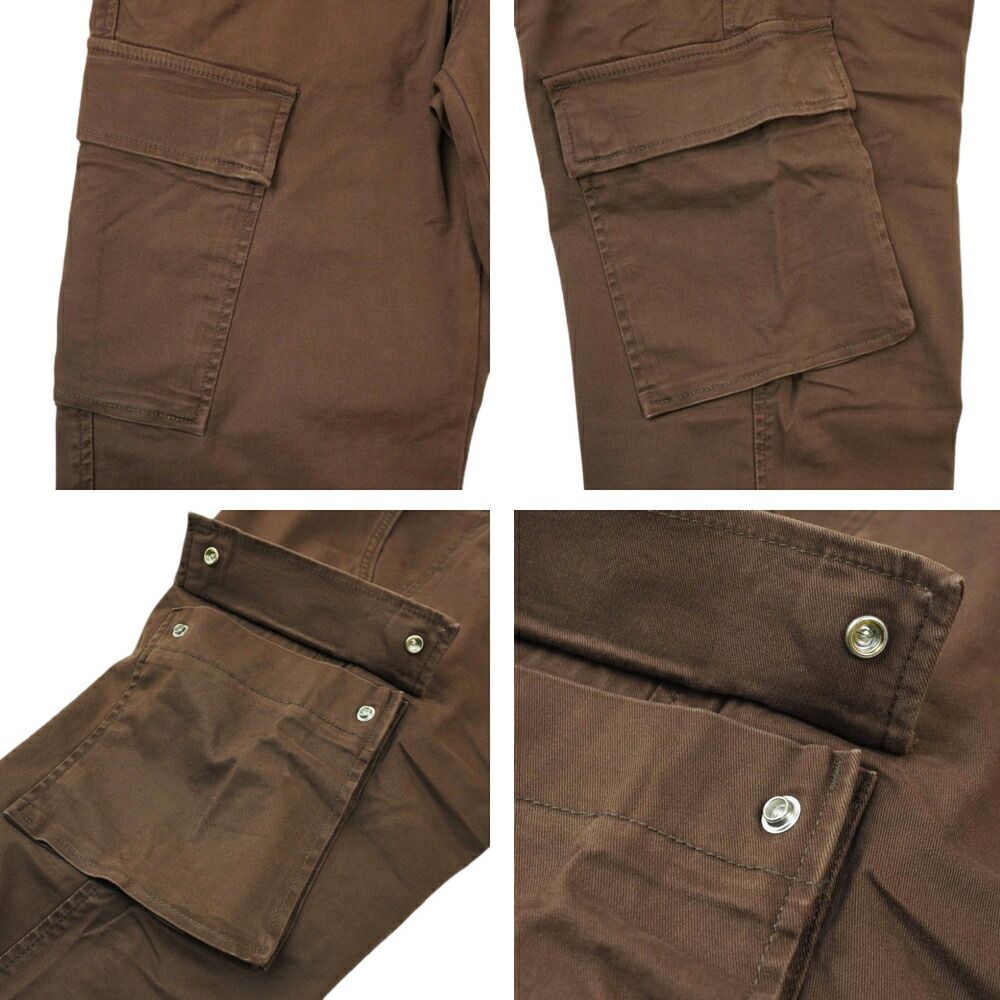 ミリタリーインスパイアのカーゴパンツをスリムテーパード仕様にアレンジ。ヒップから腿には少しゆとりをもたせ、膝から裾にかけて細くなるライン。フロントはジッパーフライ。サイドカーゴポケットを備え、コットンツイル素材が使われています。コットン98% エラスタン2%