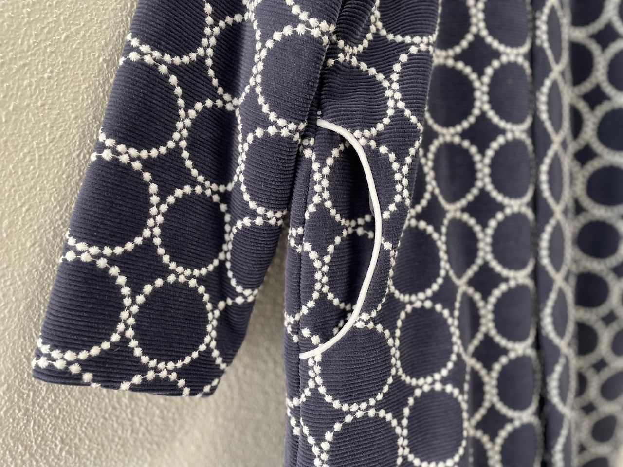 ポケットの白いパイピングなど