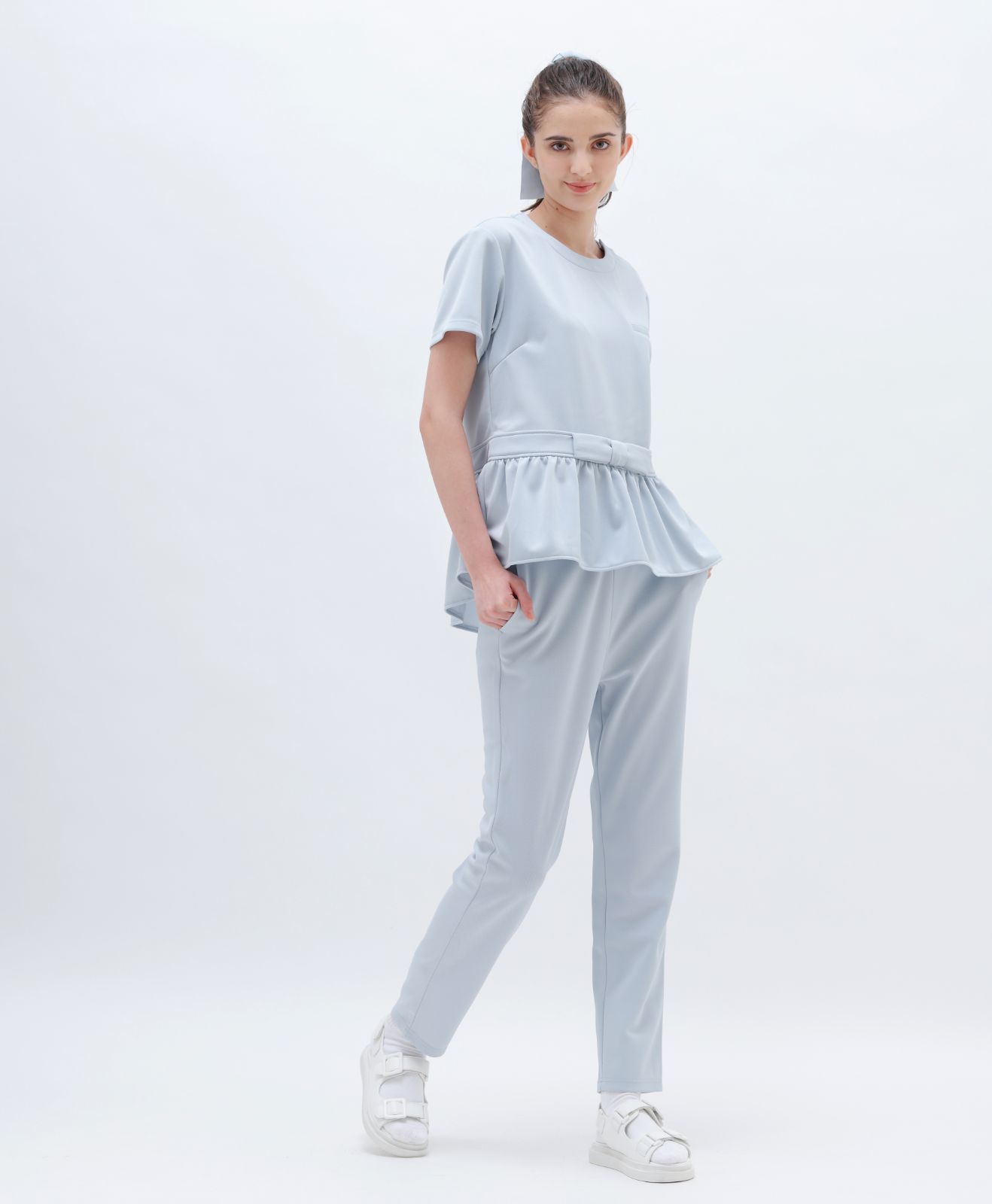 医療スクラブ 医療ユニフォーム おしゃれスクラブ Ribbon Peplum Shirt_