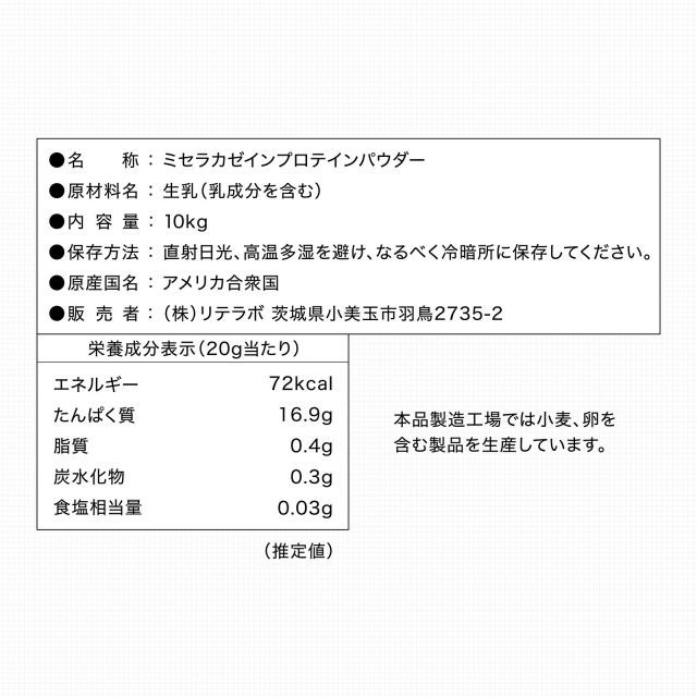 カゼイン プロテイン プレーン 10 kg 大容量 甘味料無添加 着色料無添加 味楽堂