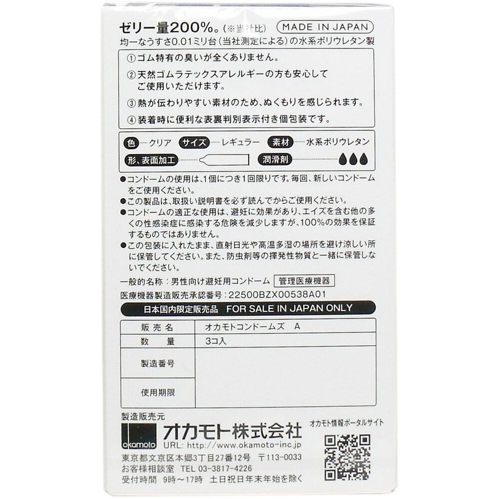 オカモトゼロワン 0.01ミリ コンドーム たっぷりゼリー 入 セット まとめ売り