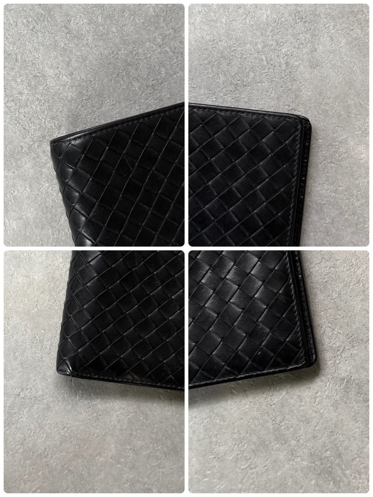 BOTTEGA VENETA ボッテガヴェネタ イントレチャート 二つ折り財布 札入れ ブラック 黒 カーフレザー メンズ レディース 2つ折り財布
