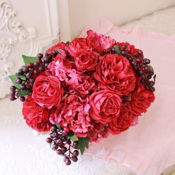 こちらは赤薔薇のオールドローズとベリーをアクセントにエレガントなスタイルに仕上げました