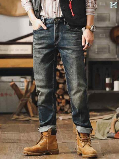 秋冬 メンズ 服 シンプル ファッション オシャレ 大人 かっこいい 大きいサイズ ストリート 紳士服 アメリカン レトロ 秋 ジーンズ ストレート カジュアル パンツ ダメージ