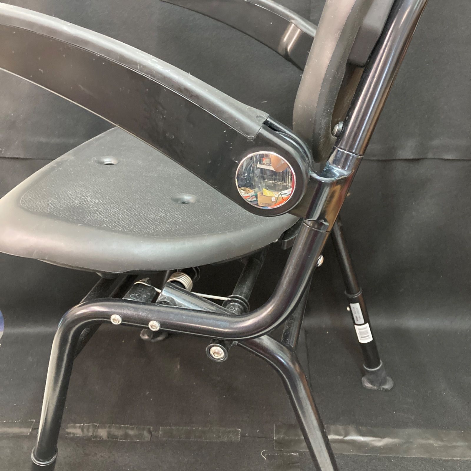 簡単折りたたみ:座面後方のレバーを下げて背もたれを持ち上げるだけで、簡単に折りたためます。