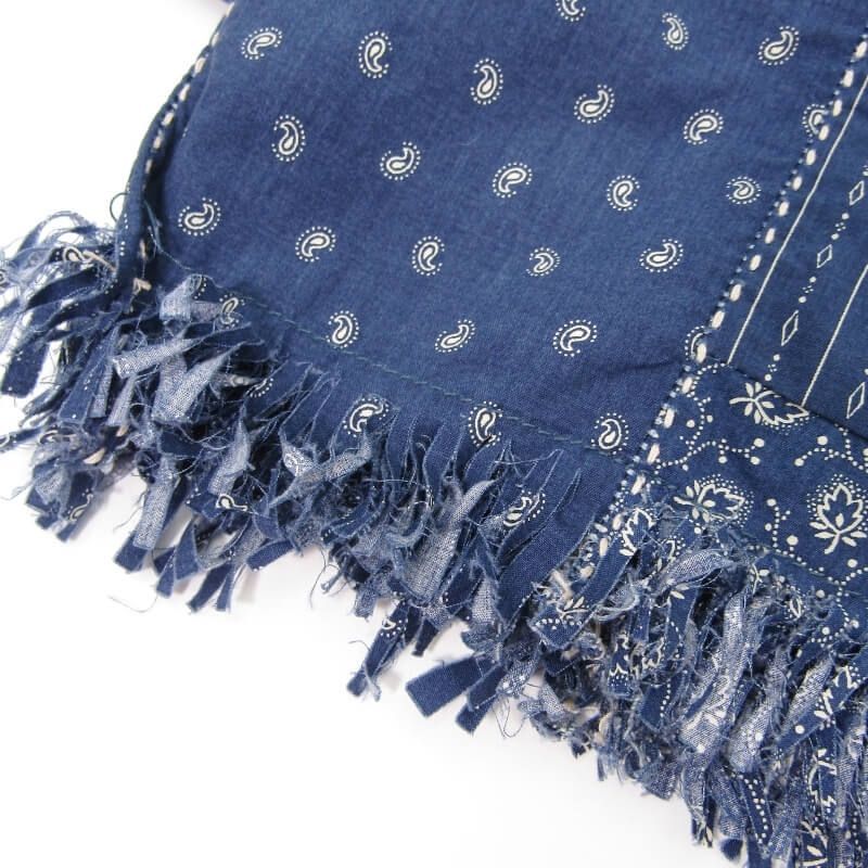 FUNSET OF ART ファンセットオブアート ストール -154 小紋柄パッチワーク 刺し子 ネイビー