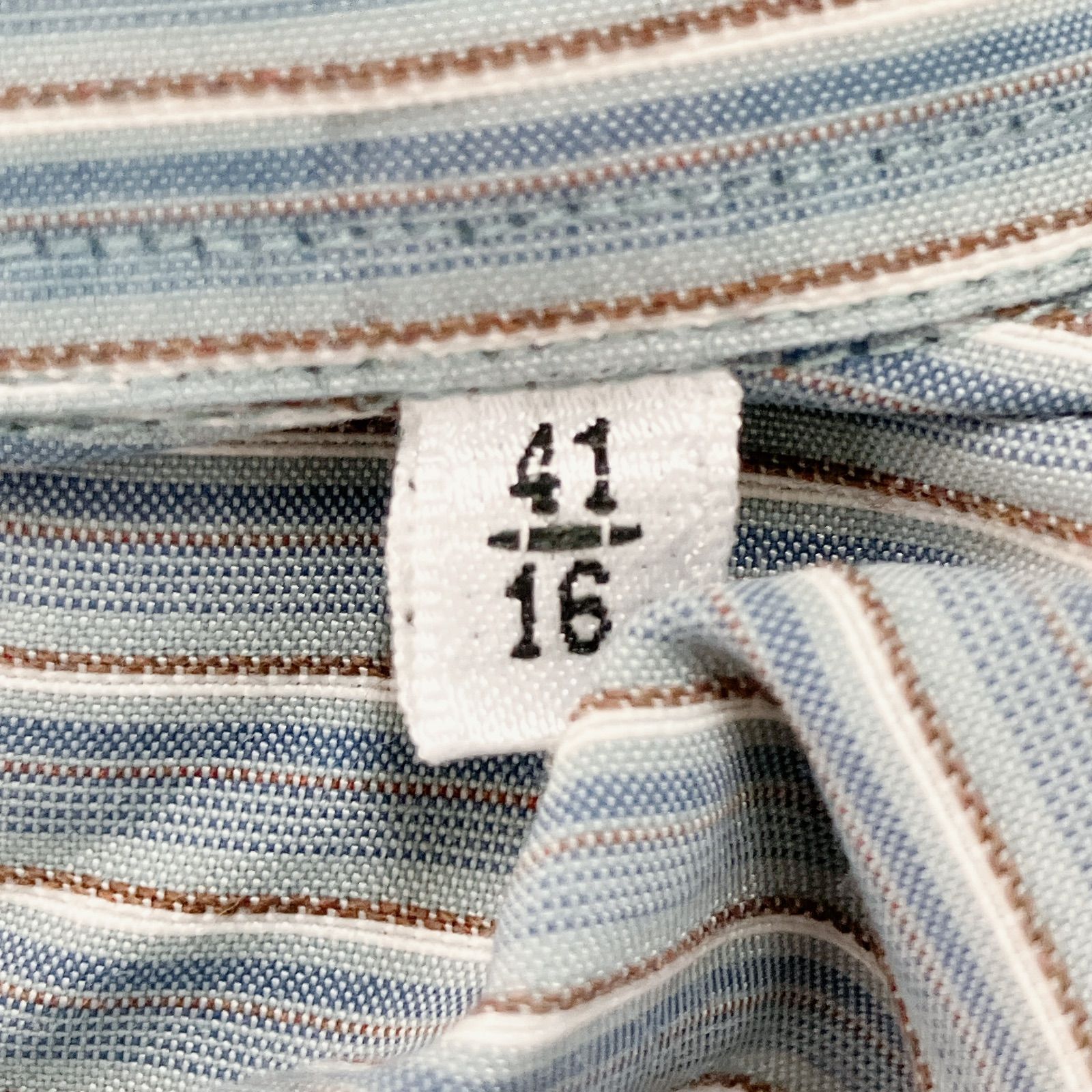 ATK 1 GIORGIO ARMANI ジョルジオアルマーニ ストライプシャツ 長袖 水色系 茶線 メンズ トップス 41|16 Lサイズ相当