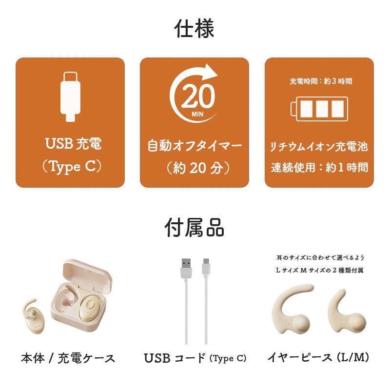 ■付属品:イヤーピース、充電用ケース、USBコード