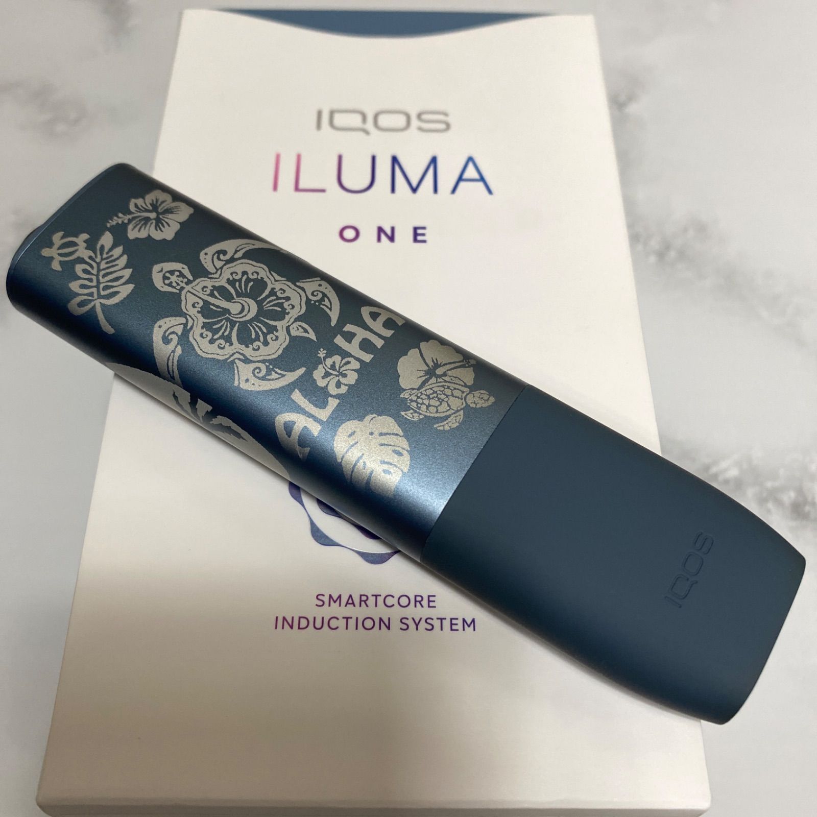 iQOS ILUMA ONE アイコス イルマ ワン ハイビスカス ホヌ レーザー加工 アズールブルー 青 ハワイアン トライバル モンステラ ヤシの木 サーフボード アロハ プレゼント ハワイ ポリネシア