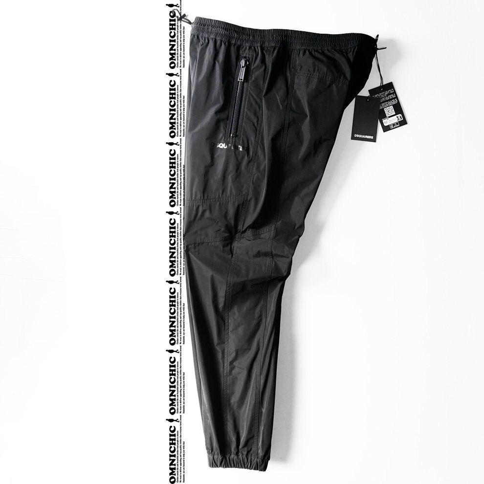 シャドウロゴ 伊製 ディースクエアード漆黒に浮かぶ光沢の陰影マットブラックZIPジョガーナイロンパンツ