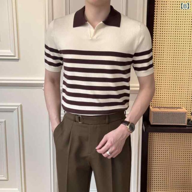 商品名:メンズ ファッション 服 男性用 オシャレ シンプル 大人 かっこいい 大きいサイズ ストリート 紳士服 夏 高級 ストライプ 半袖 ポロシャツ 半袖 T シャツ 高級 スリムフィット シャツ