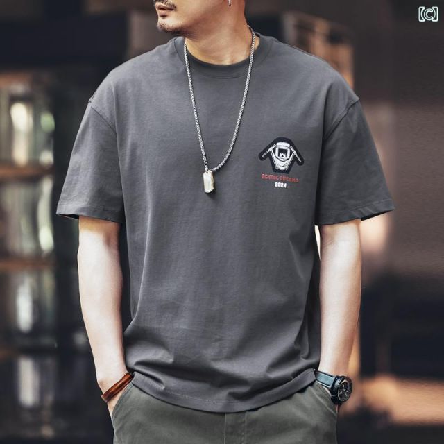 3 XL ン メンズ ファッション 服 男性用 オシャレ シンプル 大人 かっこいい 大きいサイズ ストリート 紳士服 グリーン アメリカン レトロ 半袖 T シャツ 夏 ヘビーウェイト カジュアル トップス