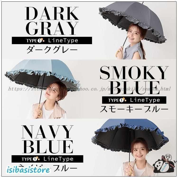 日傘 完全遮光 フリル傘 ライン傘 軽量 晴雨兼用 長傘 雨傘 遮光 UVカット ショート傘 レディース傘 撥水 日差し 紫外線