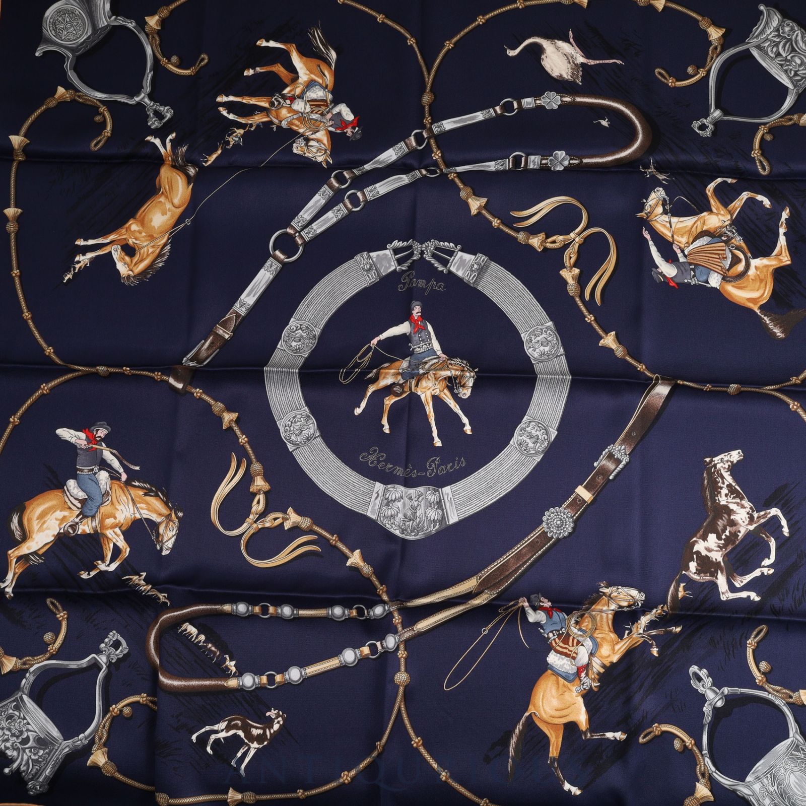 エルメス スカーフ カレ70 PAMPA 大草原 ネイビー 箱 SILK 100%