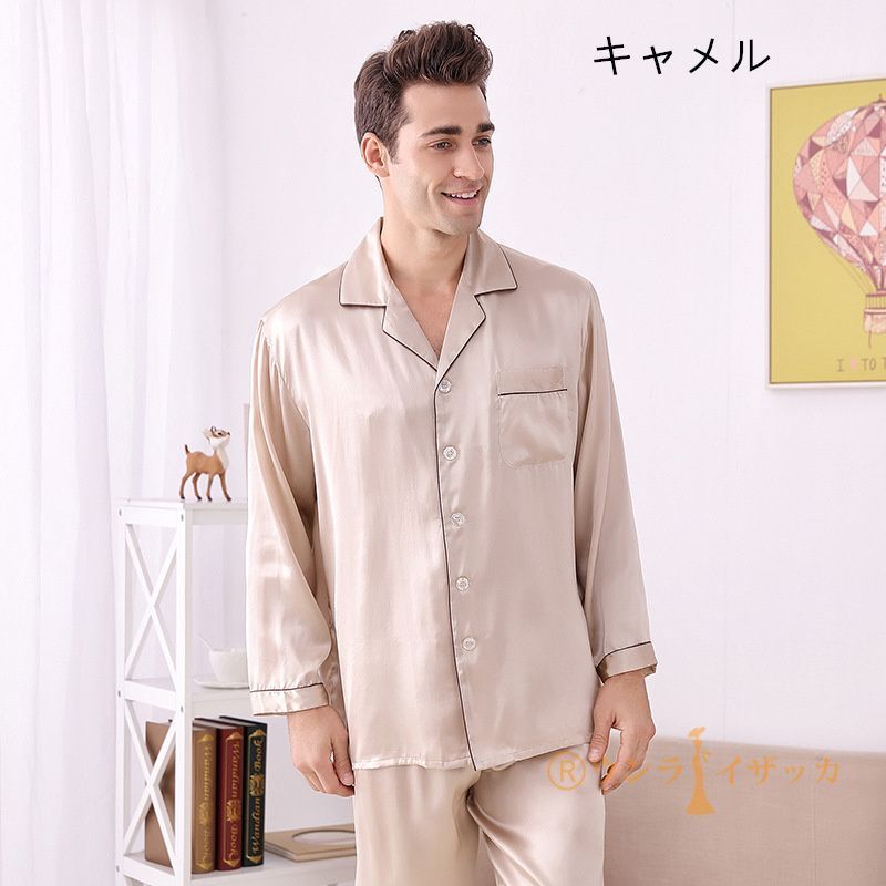 シルク パジャマ メンズ シルクパジャマ 上下セット 長袖 シャツ ロング パンツ セットアップ ルームウェア 6 A シルクサテン 甚平 高品質 天然素材 快眠 敏感肌 吸湿 速乾 抗