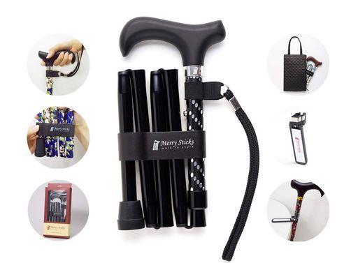 コンボセット MerrySticks メリースティックス 折りたたみステッキ つえぶくろ-ステッキクリップホルダー付き 杖 スターライト ブラック