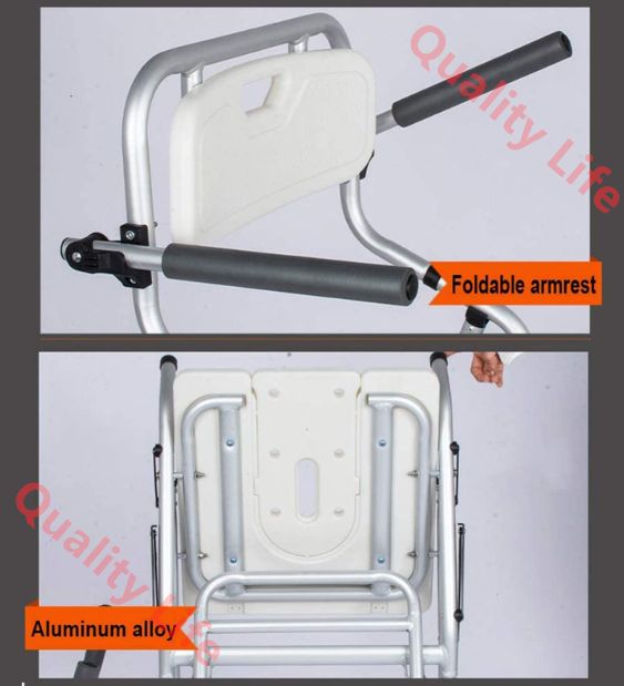 ? 人間味のあるデザイン 押しハンドルと 360 度回転可能なブレーキホイールが特徴で、椅子の移動やトイレの乗り越えが簡単です。 取り外し可能なバケツが装備されており、単独で使用することも、安全なトイレトラックフレームとして使用することもできます。 滑り止め手すり、より安全かつ省力的に使用できます。 折りたたみ式フットレストを採用し、よりコンパクトな形状を実現。
