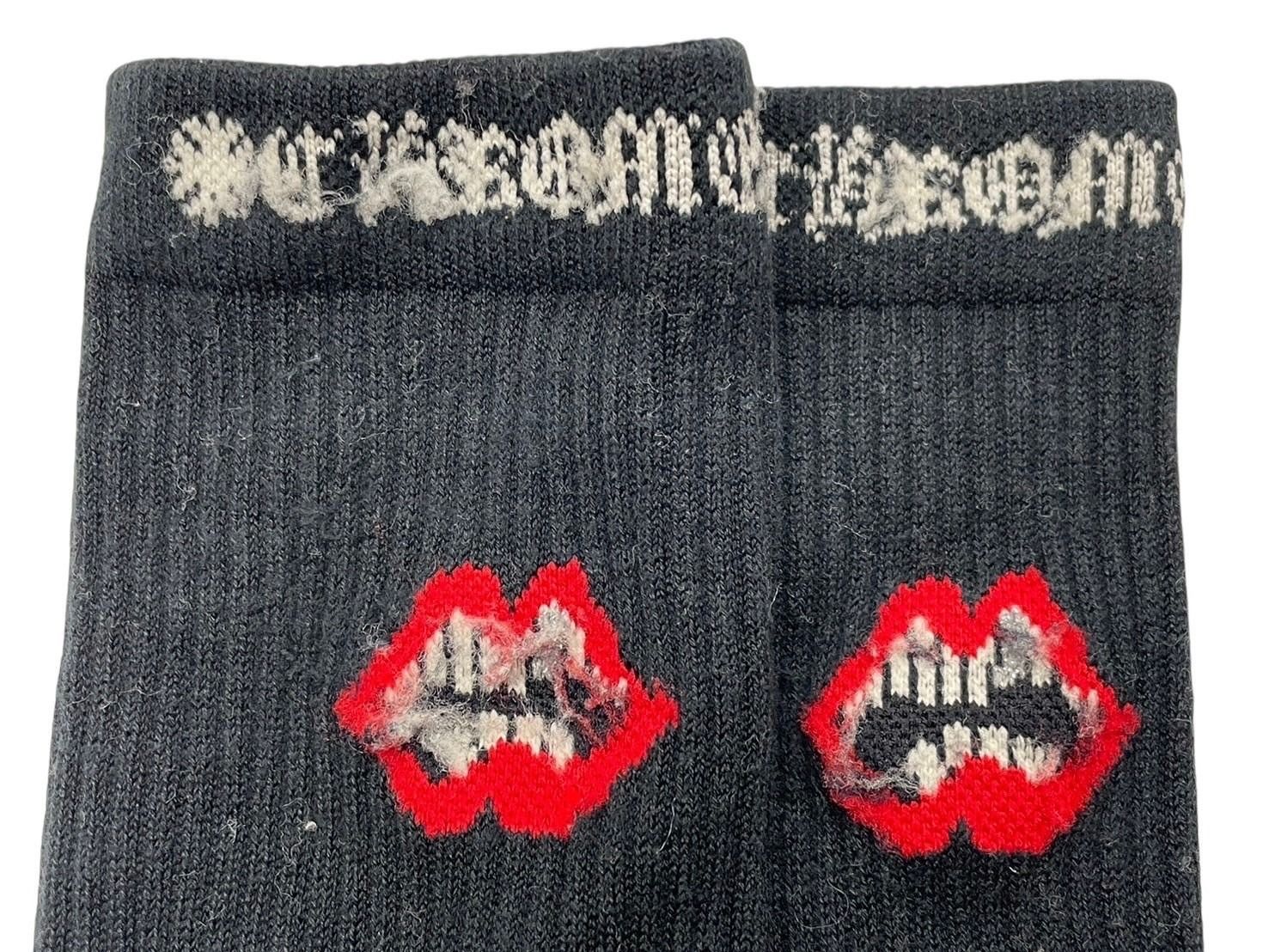 CHROME HEARTS クロムハーツ 靴下 マッティボーイ リップ ソックス ロゴ刺繍 ブラック レッド コットン 4 c 070935