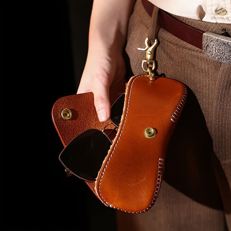 手縫い仕上げの温もりと、真鍮スナップクロージャーの重厚感が大人の魅力を引き立てます。サングラスだけでなく、キー・イヤホン・小銭も整理できる多ポケット設計。