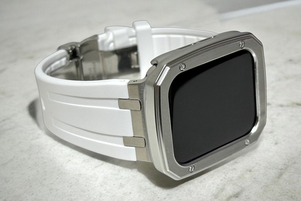 ホワイトシルバー アップルウォッチバンド ラバーベルト Apple Watch保護カバー 艶消しケース メンズ レディース 44 mm 45 49 ウルトラ ultra 2 se