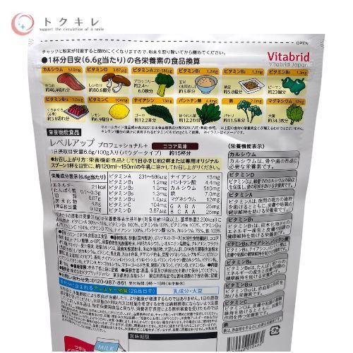 トクキレ 4袋セット Vitabrid ビタブリッドジャパン ビタブリッド レベルアップ プロフェッショナル プラス ココア風味 約15杯分 100 g 成長期応援