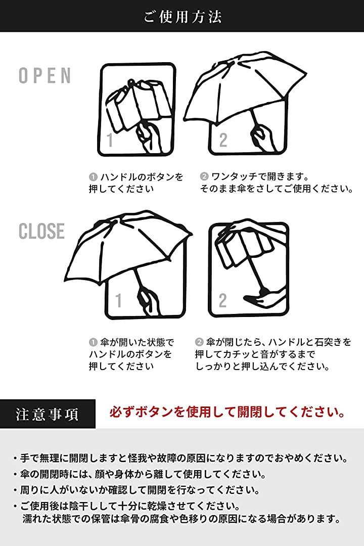 ・勢いよく開く自動開閉折りたたみ傘は通常の傘より使用方法によっては大変危険ですので、お子様のお手に触れないようにしてください。