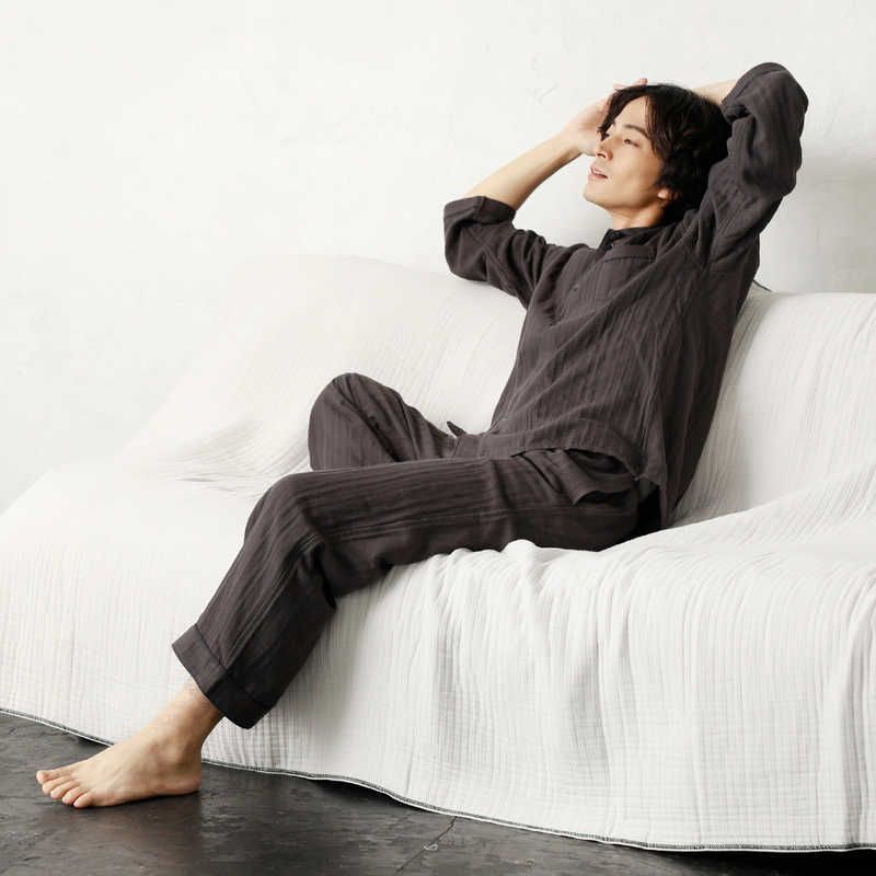 秋冬にも使いやすいグレーとネイビーのスタンダードなガーゼパジャマです。