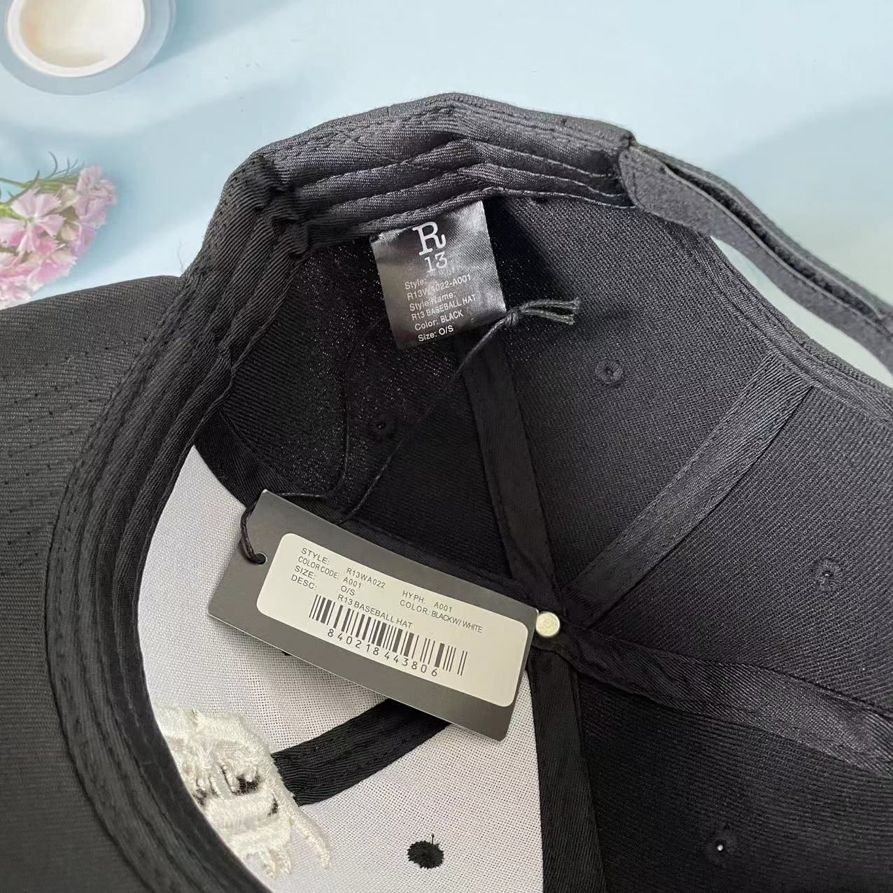 R 13 アールサーティーン フロントロゴ刺繍 ベースボールキャップ 帽子 ブラック