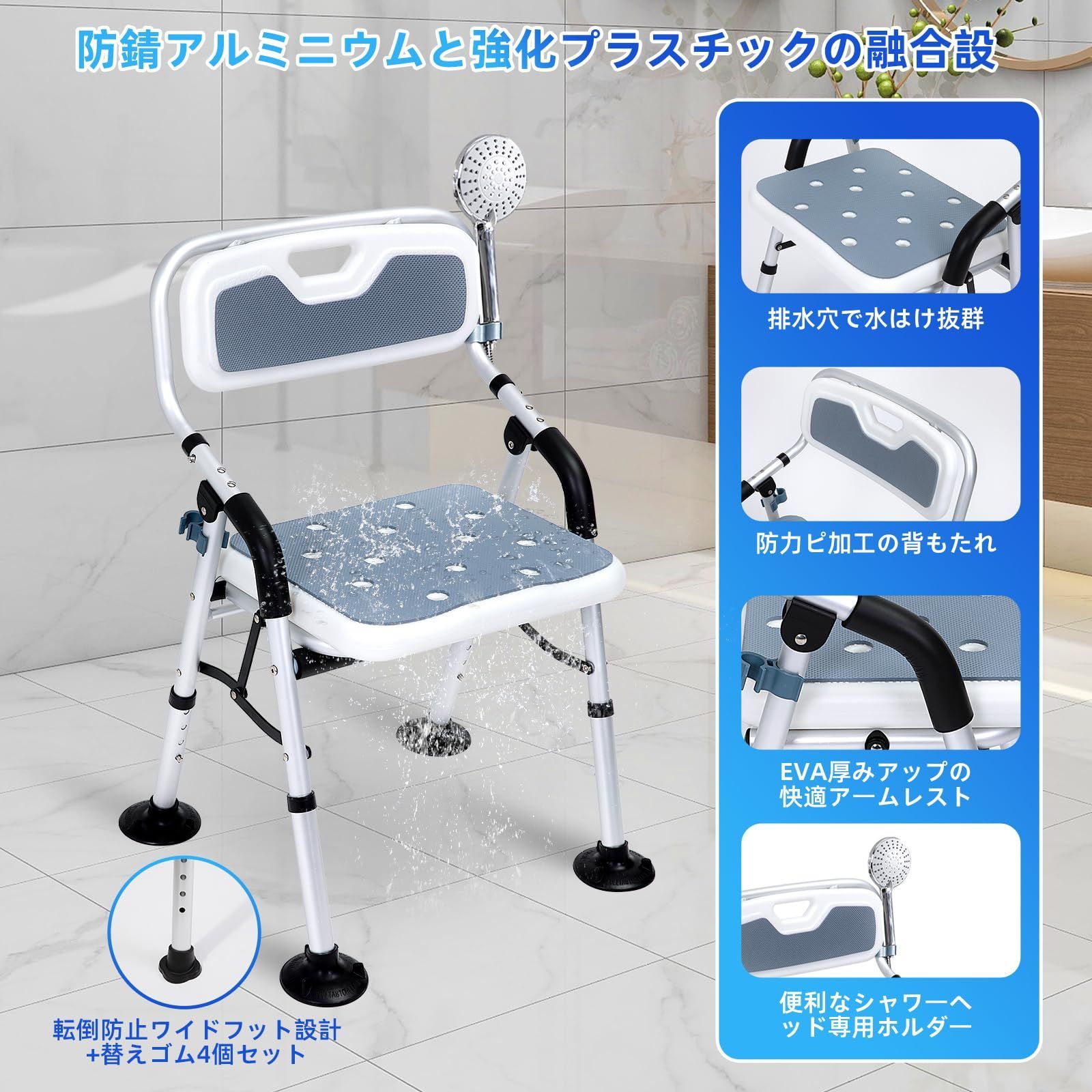 折りたたみシャワーチェア 介護用品 お風呂椅子 浴室 椅子 介護用 4段階高さ調節 バスチェア 入浴介護 立ち上がり補助 入浴チェア 耐荷重150KG 介護チェア 転倒防止 収納に便利 軽量 丈夫 アルミ合金 高齢者安心設計