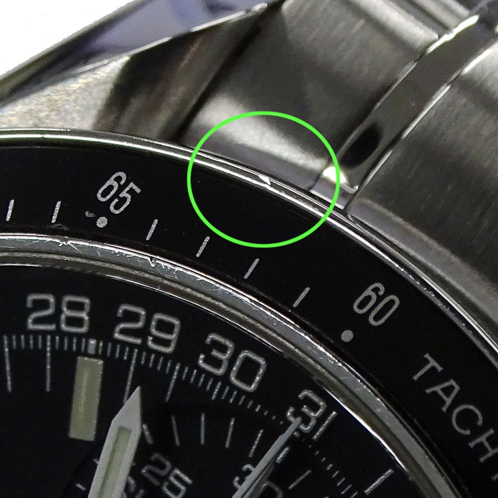 詳細: 風防に傷、文字盤・針は綺麗な状態、ベゼル・ケース・ブレス側面・裏蓋に傷、バックル開いた部分にスレ傷あり。