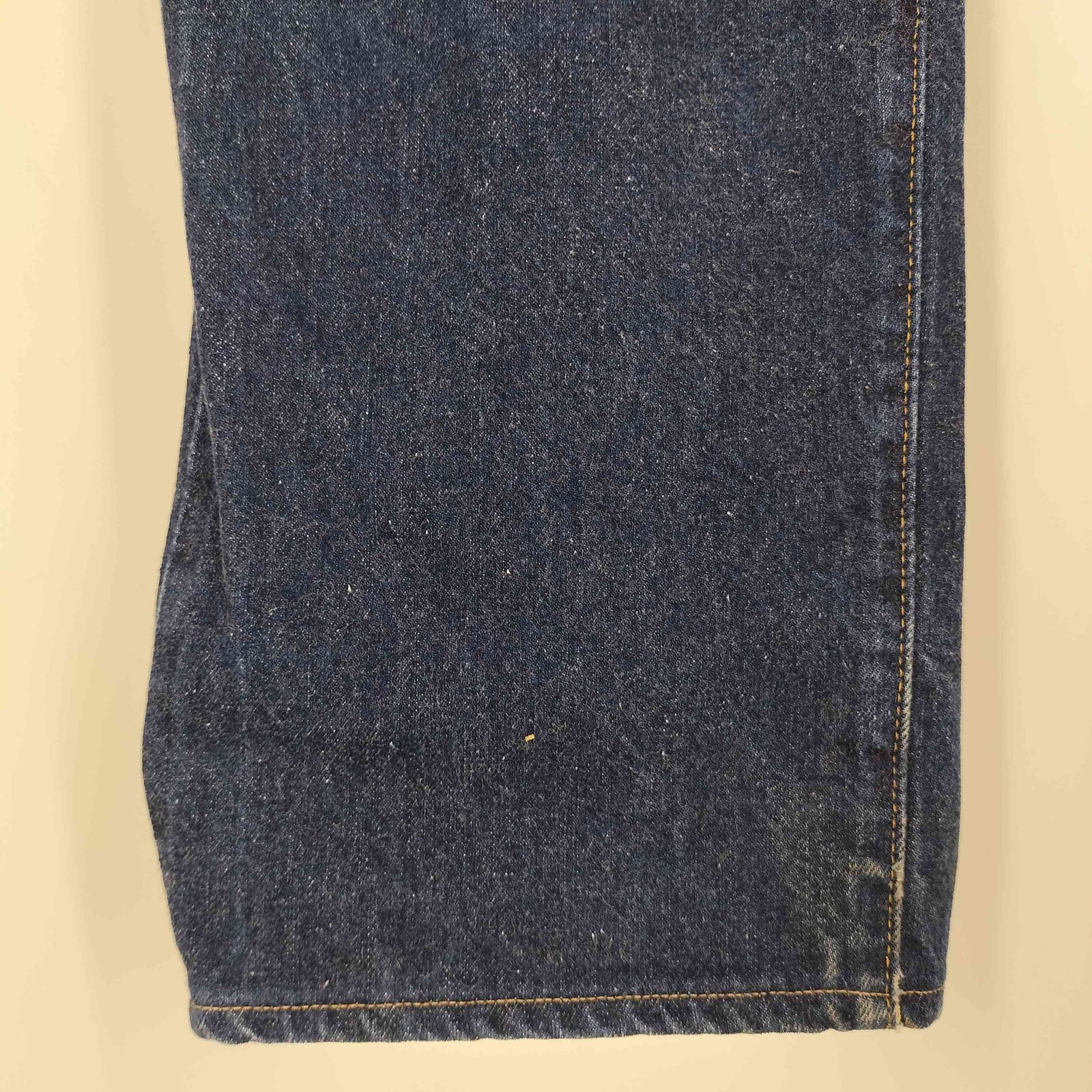 【状態詳細】全体的に少々の色褪せ、フチ各所にアタリ、かなりの裾上げがされております。
