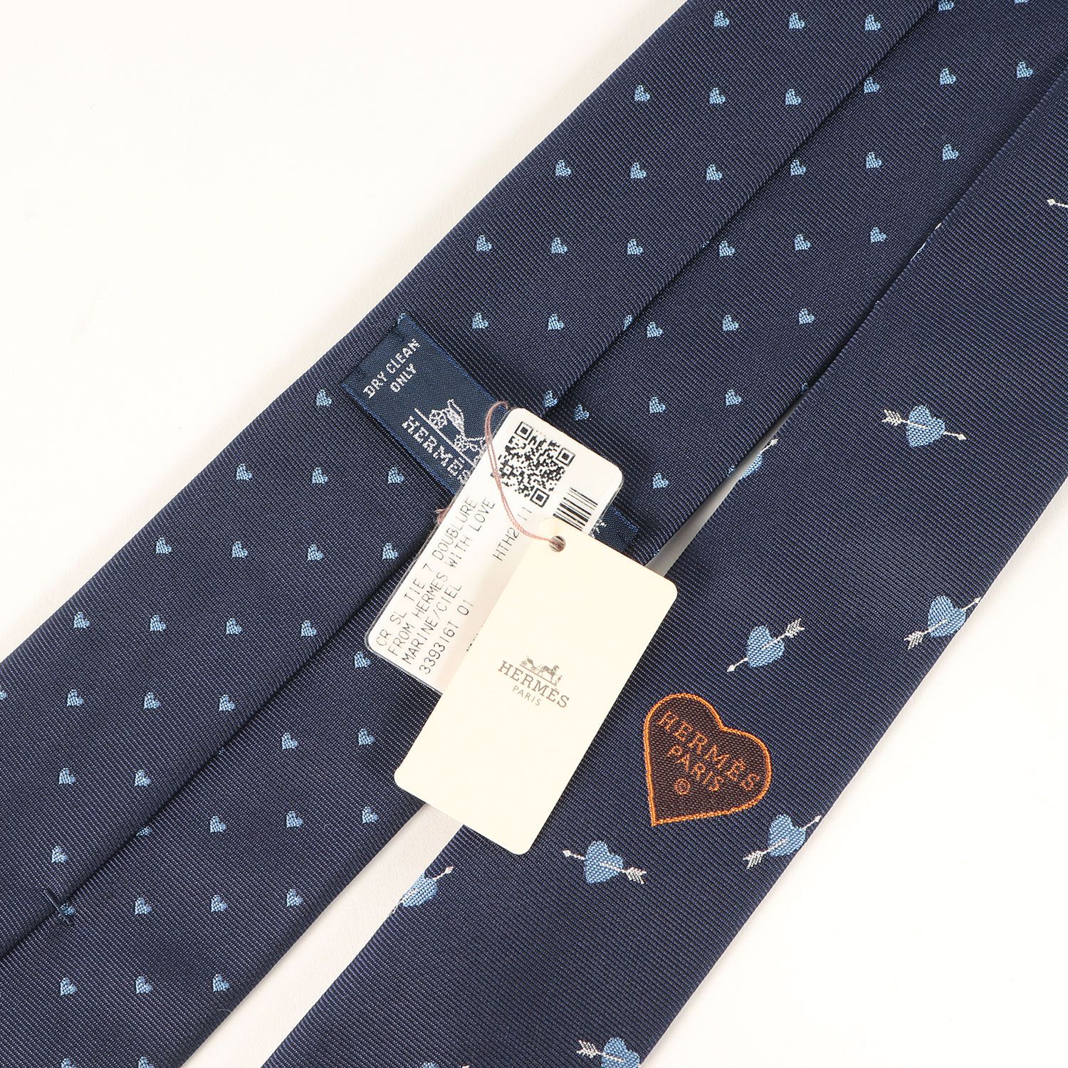 HERMES エルメス ネクタイ 近年モデル ハート モノグラム シルク FROM WITH LOVE フランス製 339316 T ネイビー 紺 ブランド ファッション アイテム 小物