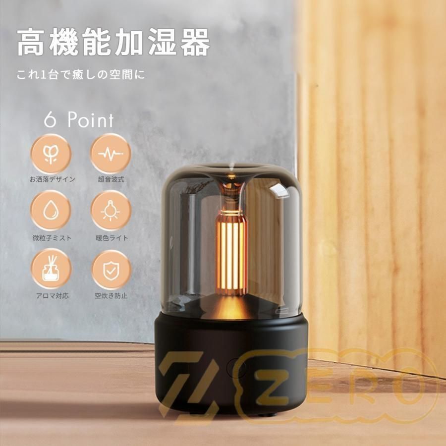 加湿器 アロマ おしゃれ 大容量 アロマディフューザー 卓上 ルームライト フレグランス 寝室 サイドランプ LEDキャンドル コンパクト