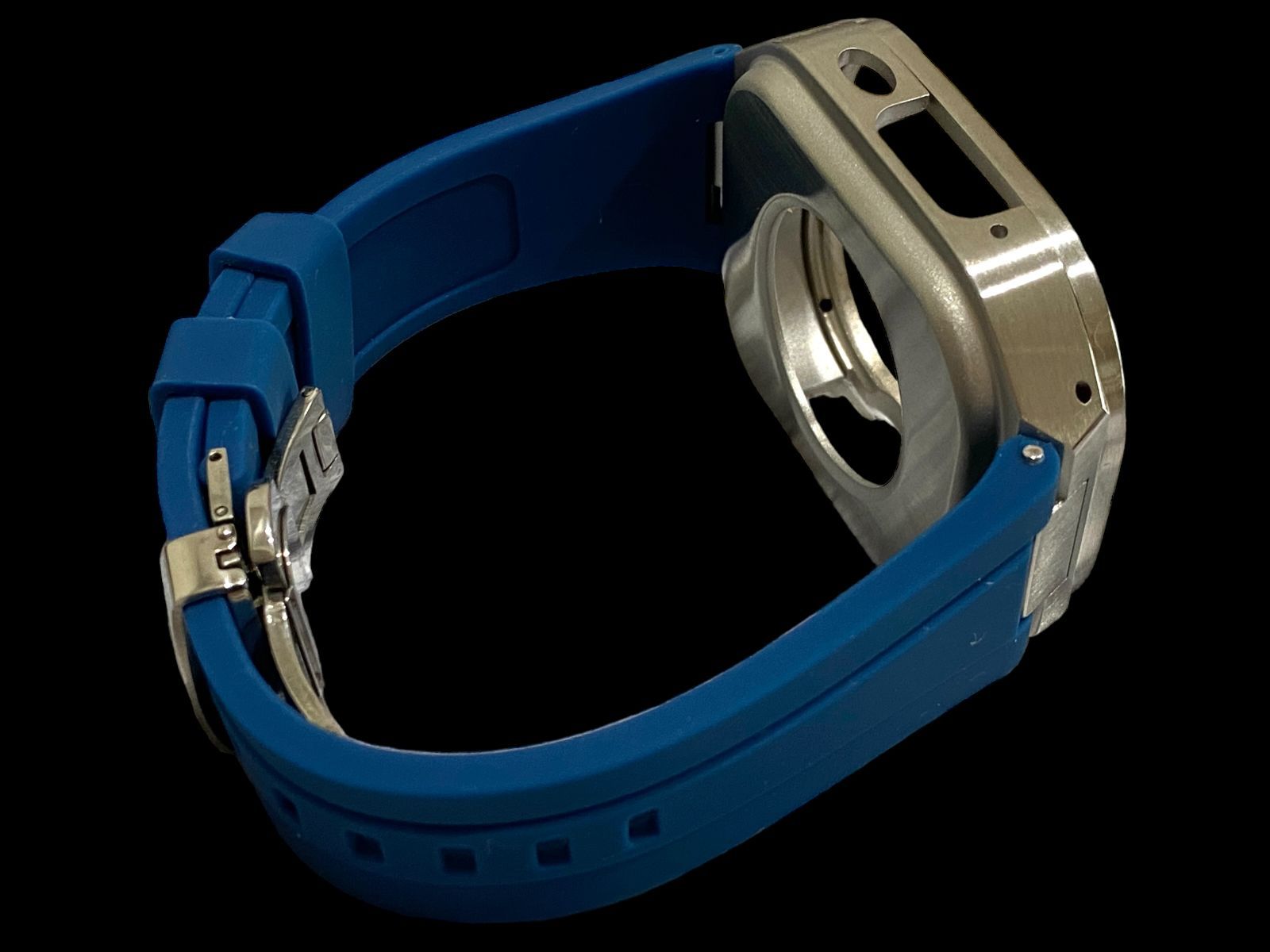 ムスクブルー×フルシルバーケース 49 mm apple watch ultraアップルウォッチラバーメタルカバーセット ウルトラ 49ミリ用 カスタム