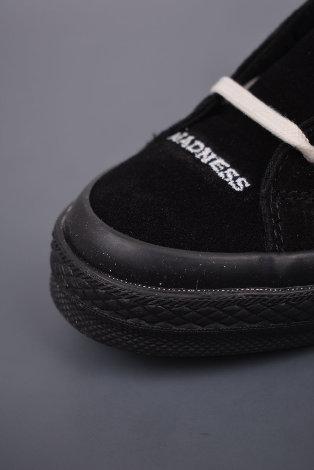 この MADNESS と Converse のコラボレーションモデル One Star は、“スノーフレーク フロッキング ブラック ミッドナイト ホワイト” のデザインで、軍事風とレトロなスタイルが融合しています。ヴァン化工法により、高品質な仕上がりです。キャンバスとスエードの素材を使い、木村カンヴァース ブラック サムライの雰囲気を再現しています。