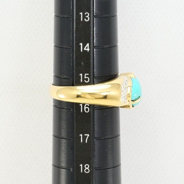K 18 YG リング ring 指輪 15.5号 ターコイズ ダイヤ 0.08 カード鑑別書 総重量約6.6 g