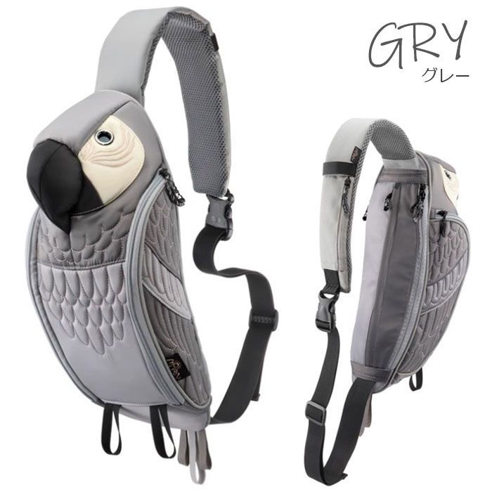 パロットスリングバッグ PR-129 | オウム 鳥 バッグ 鞄 カバン 動物 アニマル カラフル 撥水加工 赤色 青色 黄色 黒色 レッド ブルー ブラック グレー イエロー モーンクリエイションズ MORN CREATIONS