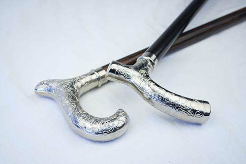 <材質>グリップ:真鍮・シルバーメッキ(イタリア製)ポール:黒檀先端ゴム:合成ゴムポールの直径:約2.1cm <色別>L字型、カーブ型