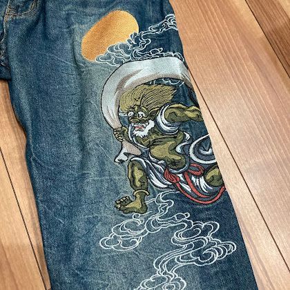 不倶戴天 ふぐたいてん 和柄刺繍 風神雷神 デニムパンツ ジーンズ