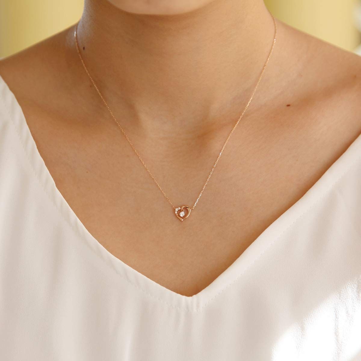 大粒のキュービックジルコニアが揺れる、愛らしいハートモチーフのネックレス。眩い輝きを放ち胸元を華やかに彩ります。女性らしい可憐な魅力を引き出すデザインです。