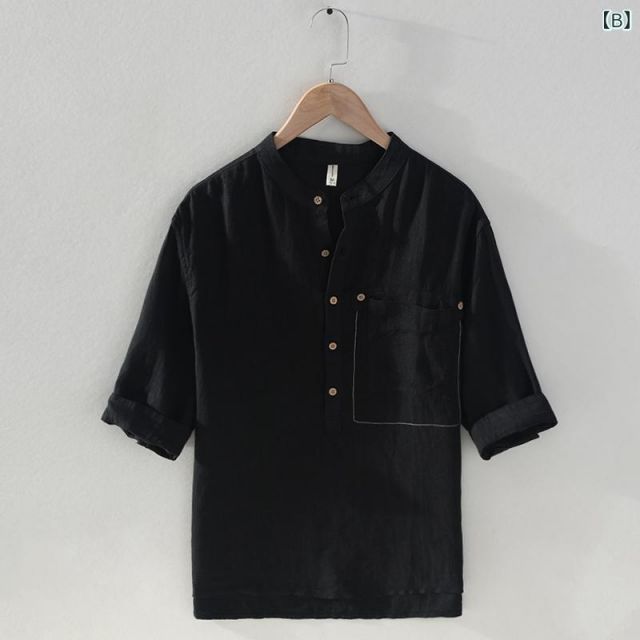 3 XL メンズ ファッション 服 男性用 オシャレ シンプル 大人 かっこいい 大きいサイズ ストリート 紳士服 スタンドカラー リネン シャツ 五分袖 カンフー 唐 スーツ 綿 カジュアル 夏