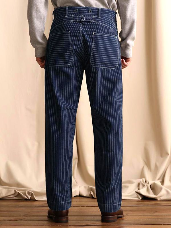 ヴィンテージのディテールシンチバックやサスペンダー釦、バックポケットの位置が外側になっていたりと無骨なディテール。