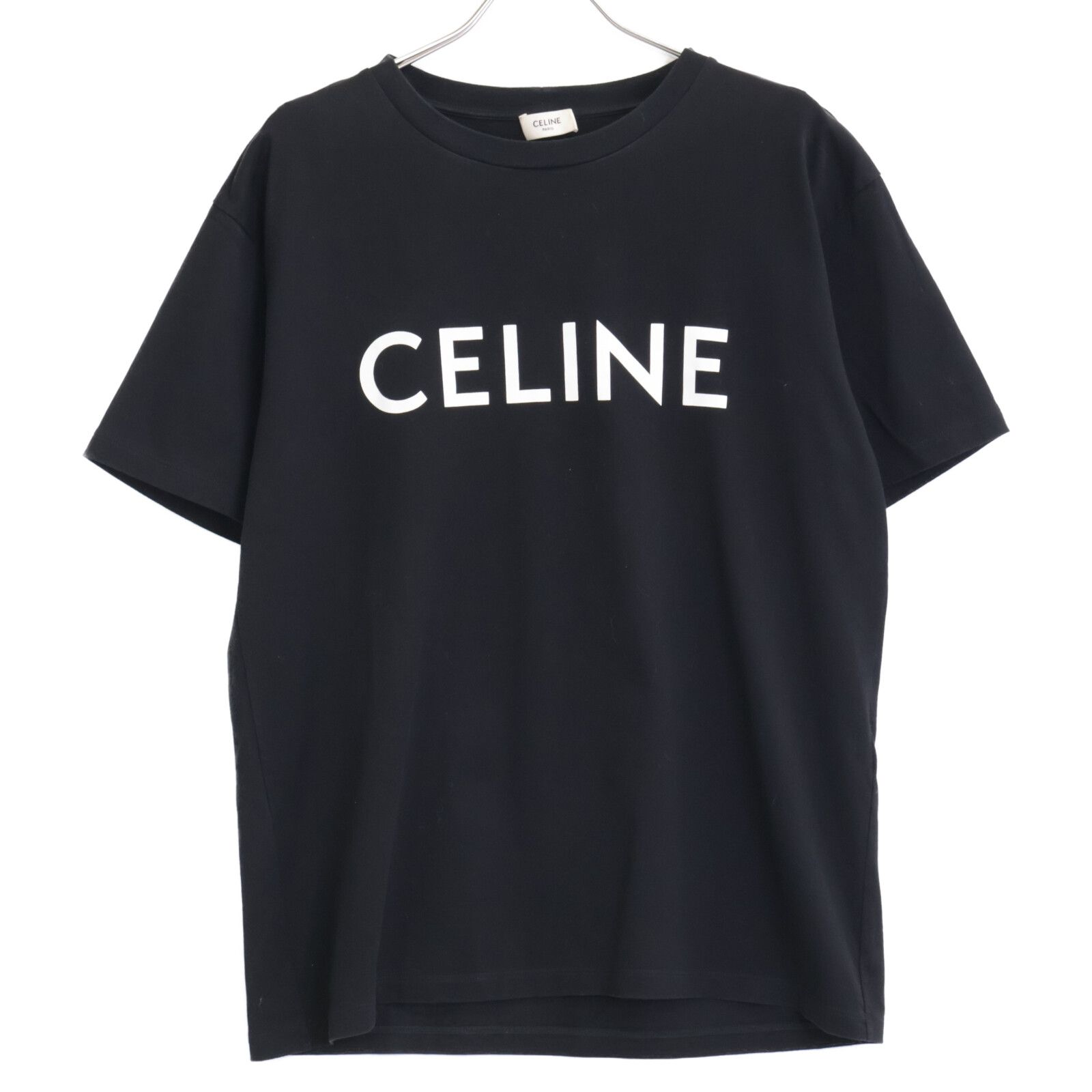 CELINE セリーヌ ブラック コットン ロゴ 半袖Tシャツ XS