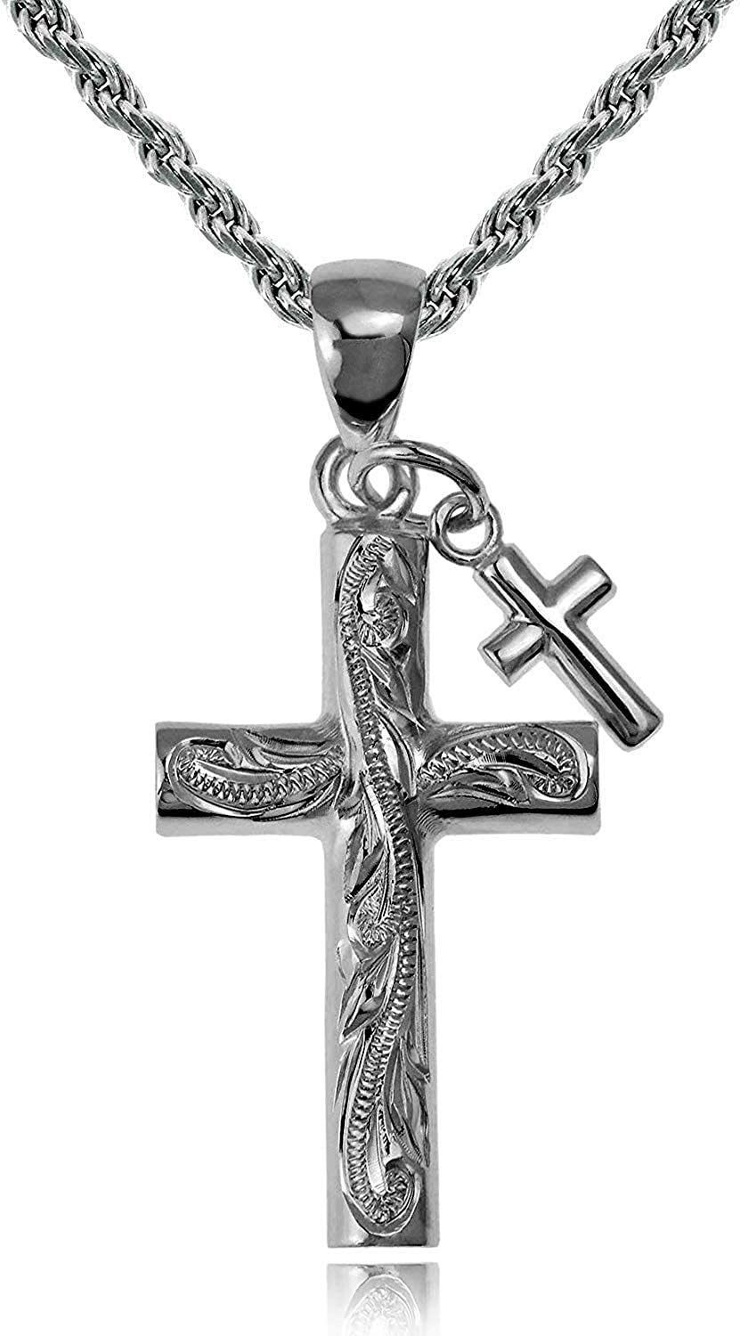 ロープチェーン55cm付 [レイラニ] ハワイアンジュエリー ダブル クロス スクロール彫り ペンダント ネックレス シルバー 925(ロープチェーン55cm付)
