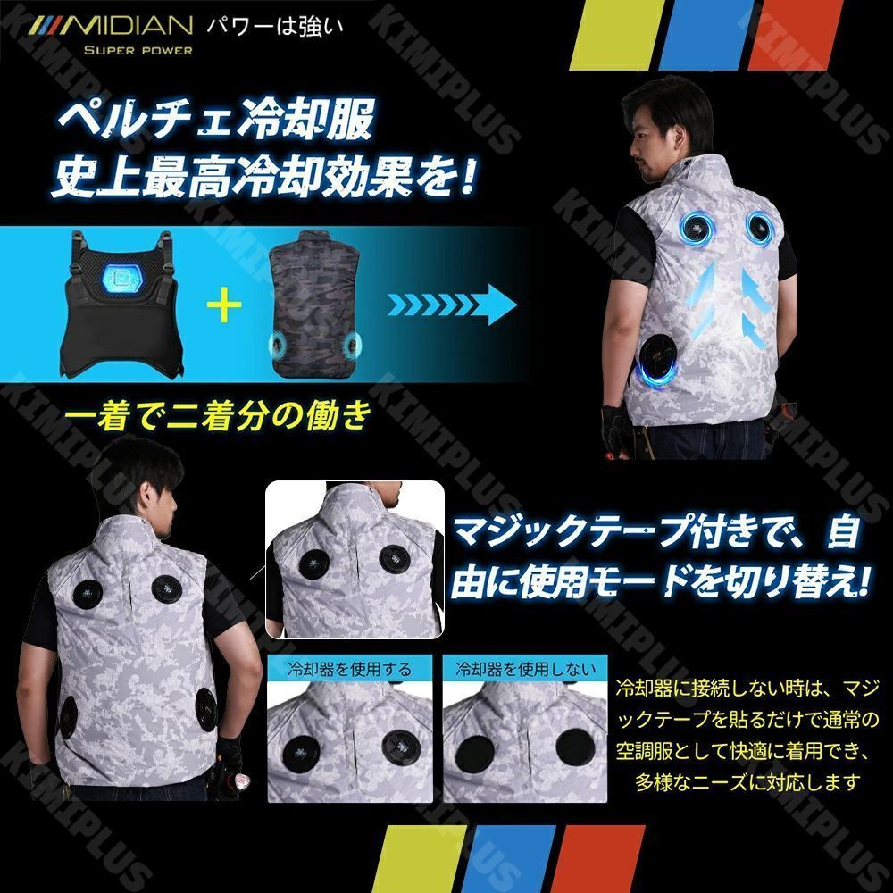 【冷却器&扇風機の二重モード】 半導体冷却技術と扇風機冷却の二重モード: 人体の温度感知に敏感な部位を冷却器で集中的に冷やし、扇風機で全体の温度を下げる新しい冷却方式で、暑い環境下でも快適に過ごせます。MIDIANの冷却服は冷却ベストと空調作業服を組み合わせ、一着で二着分の働き、冷却効果が倍増します。冷却器は3段階、扇風機は5段階 調節です。冷却服には2つの使用モードがあります。